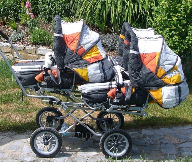 Drillings Kinderwagen von Christiane Wegner zu verkaufen. Komplett mit Softtragetaschen zum Liegen, ohne diese wird er zum Buggy. Es sind zwischen 1 und 3 Sitze montierbar. Bei 3 Sitzen ist es möglich zB 2 vorne und 1 mittig hinten zu montieren, bzw 1 vorne und 2 hinten.