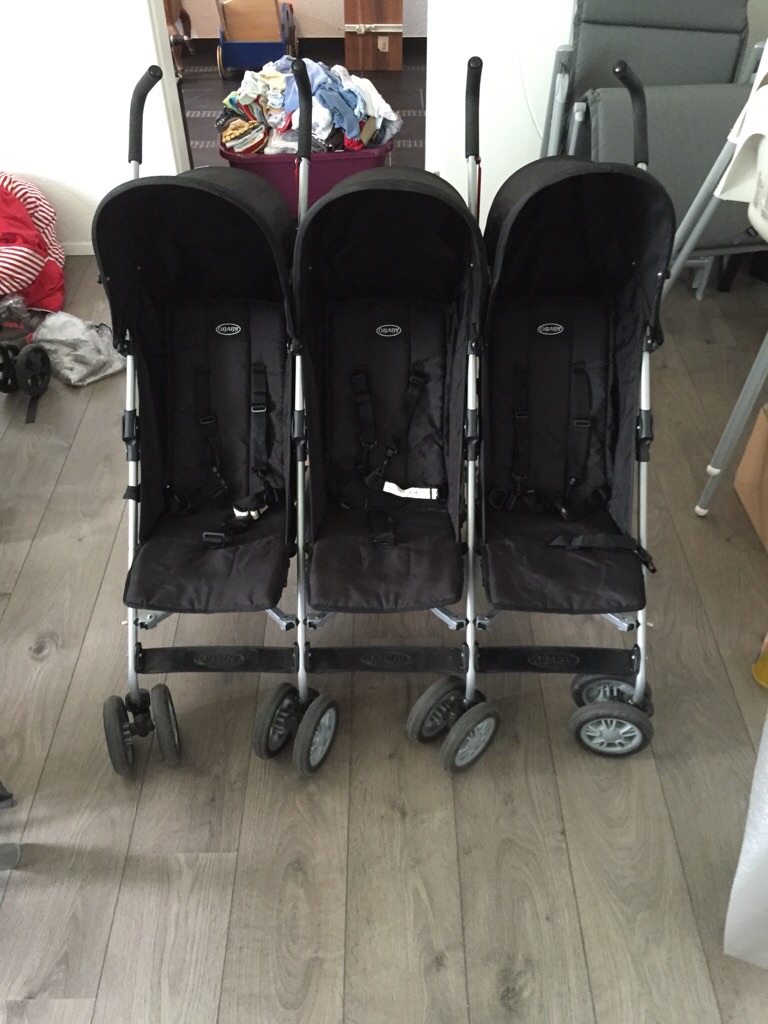 Verkaufen unseren schwarzen Obaby Drillingsbuggy. Er ist in einem sehr guten Zus...