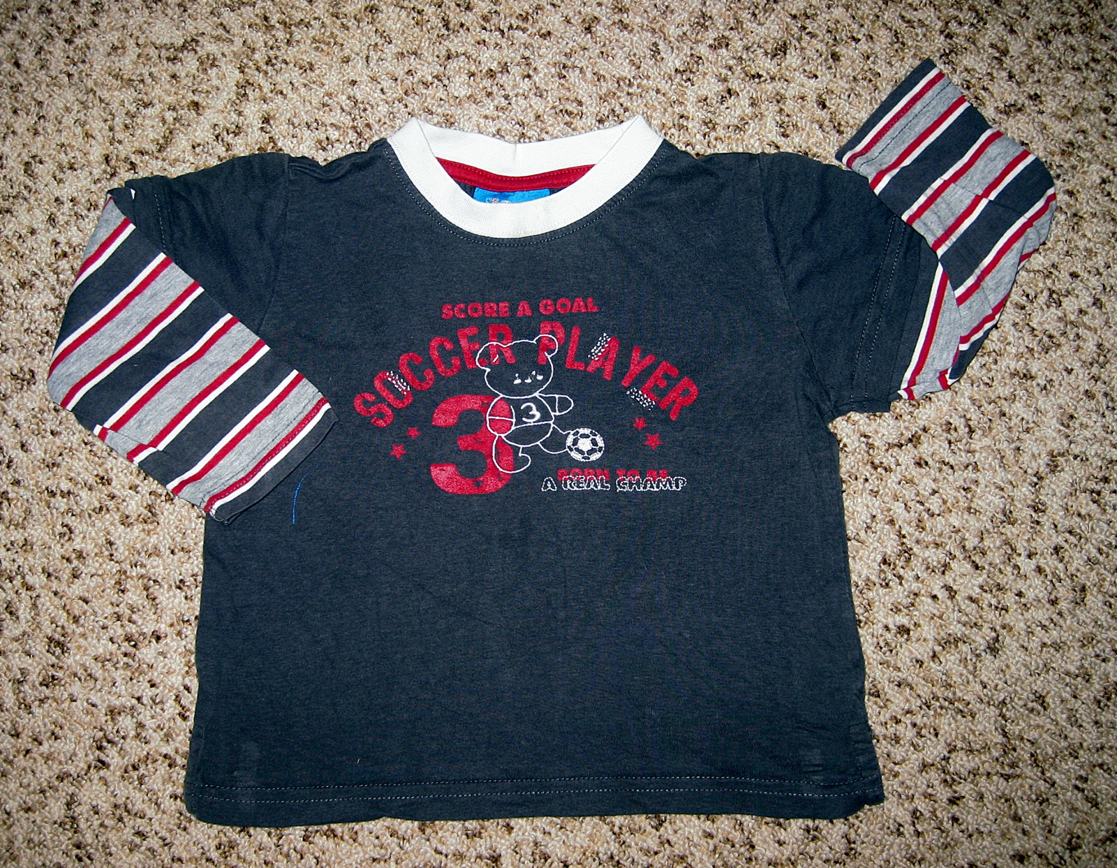 Drei identische Baumwoll-Langarmshirts im Lagen-Look, von Topolino, Größe 86....
