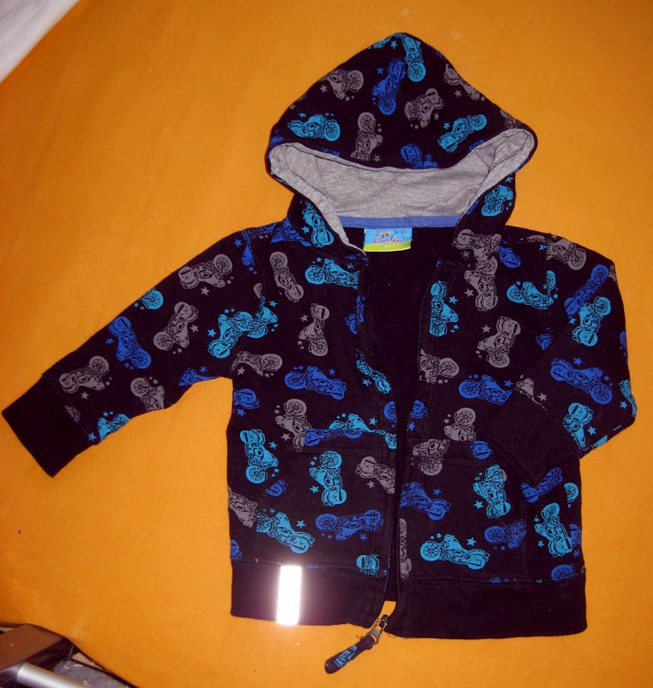 Zwei sehr schöne Jungs-Sweatjacken von Topolino, schwarz mit Motorrädern drauf. ...