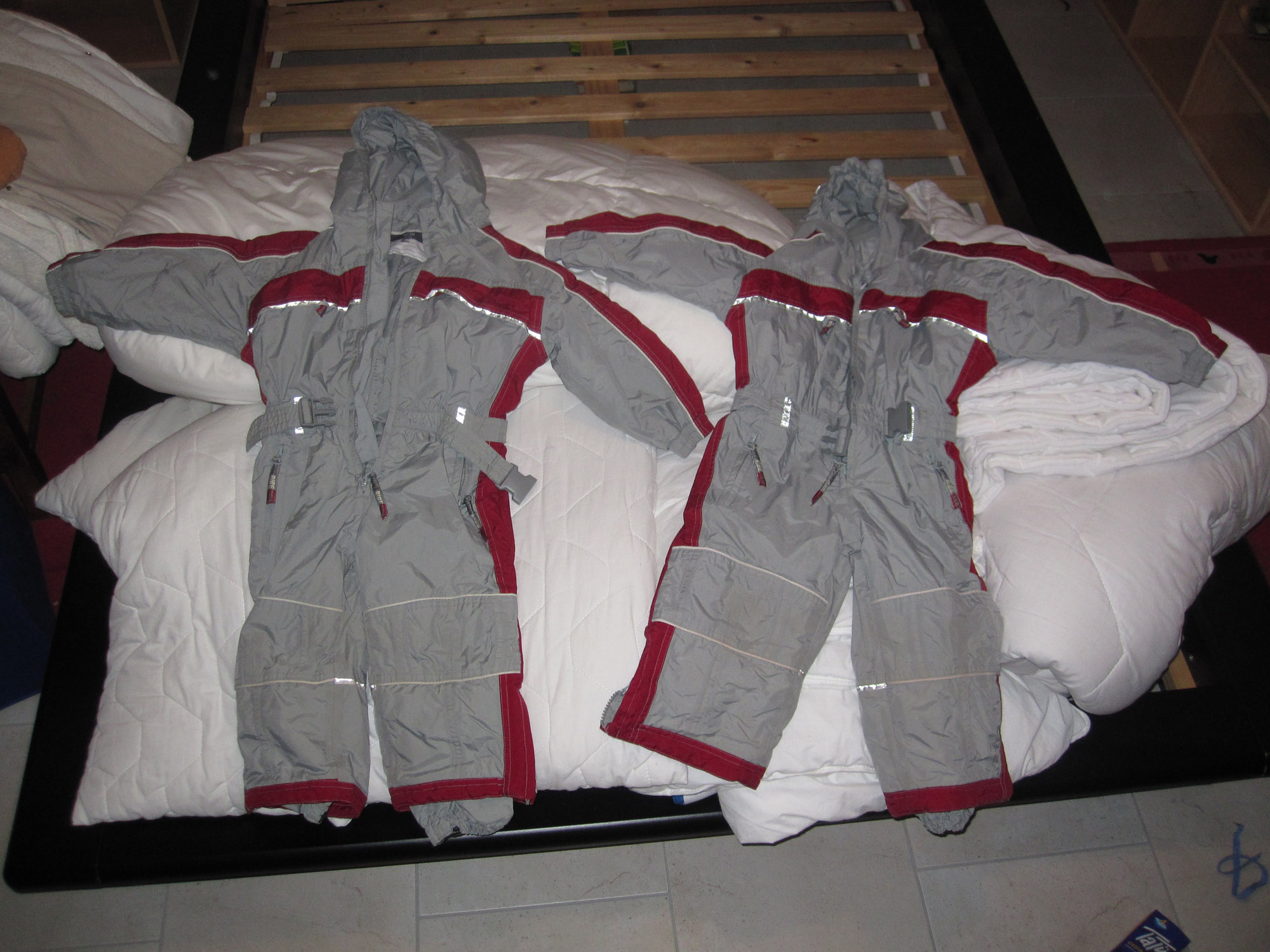 Für die Schneeanzüge paar Euro, die Unterhemden (viele, Gr. ca. 92, für Jungen u...