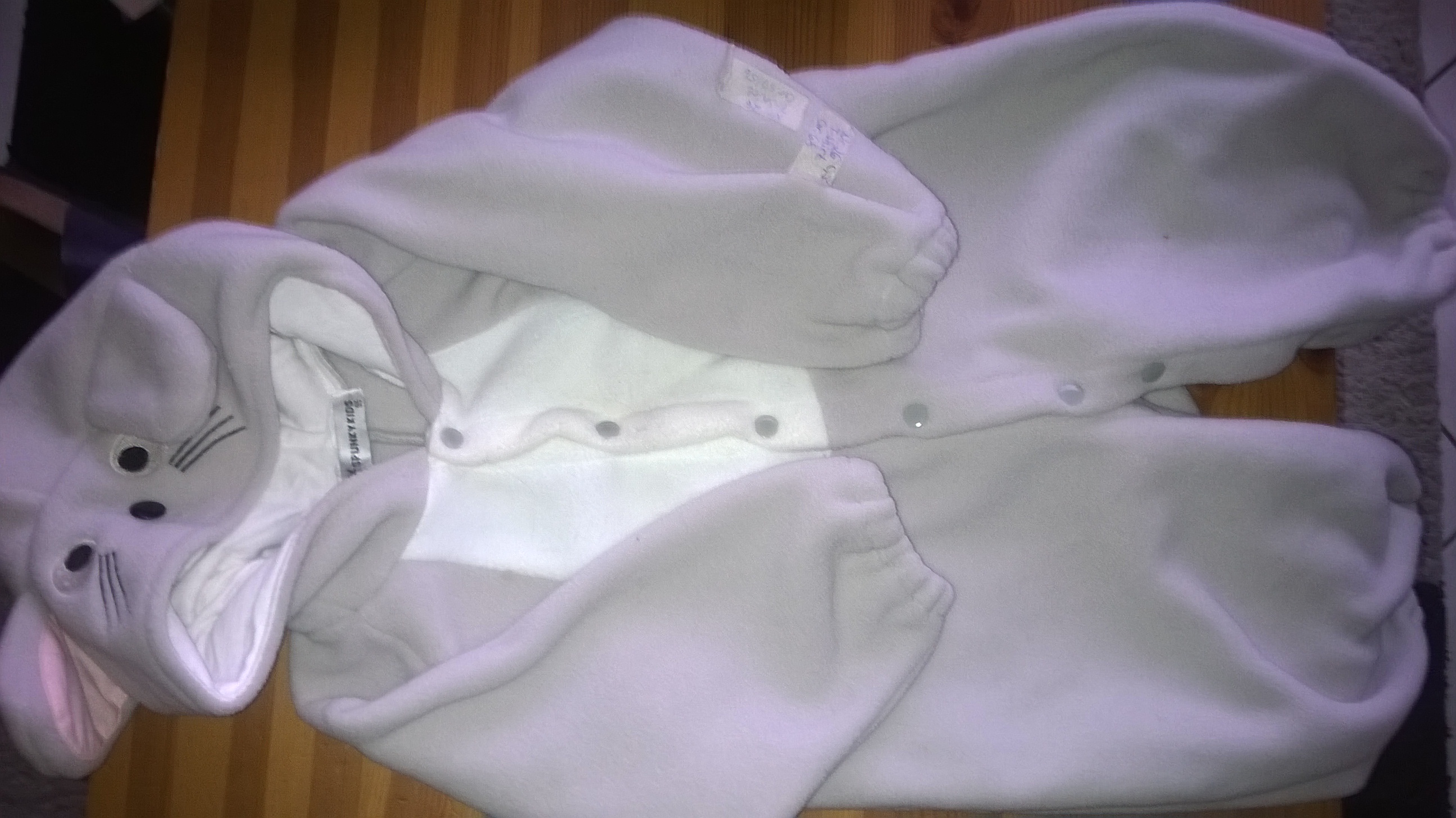 Kleinkinder-Overall mit Kapuze und Schwanz, vorne bis zum Schritt durchgehend ge...
