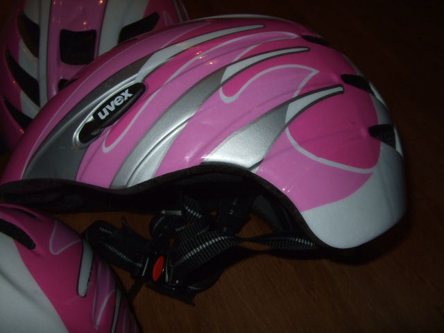 Wir geben drei Fahrradhelme von Uvex ab, Modell Uvision Junior. Verstellbar, Gr. 52cm- 57cm, 250g. Innen gepolstert. Gebrauchsspuren, aber gut erhalten. Wir hatten uns seinerzeit für diese Modell entschieden, da der Helm auch hinten lang ist und den Hinterkopf gut schützt.