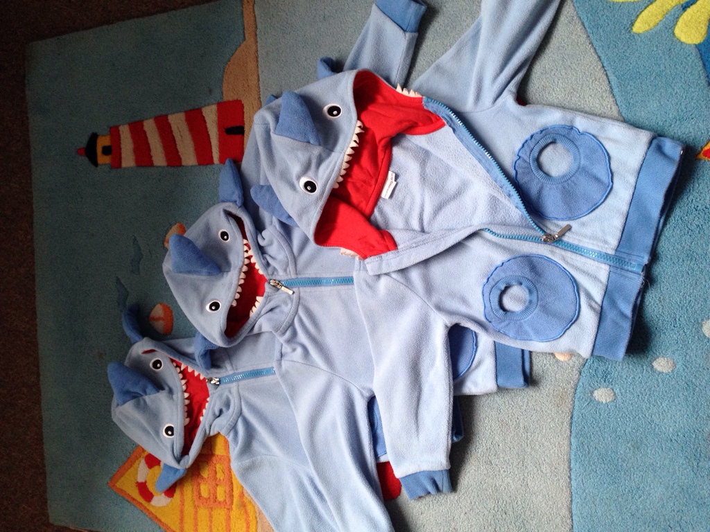 3 Wendejacken der Firma Noppies in blau-weiss-gestrreift und innen blau mit weissen Meerestieren