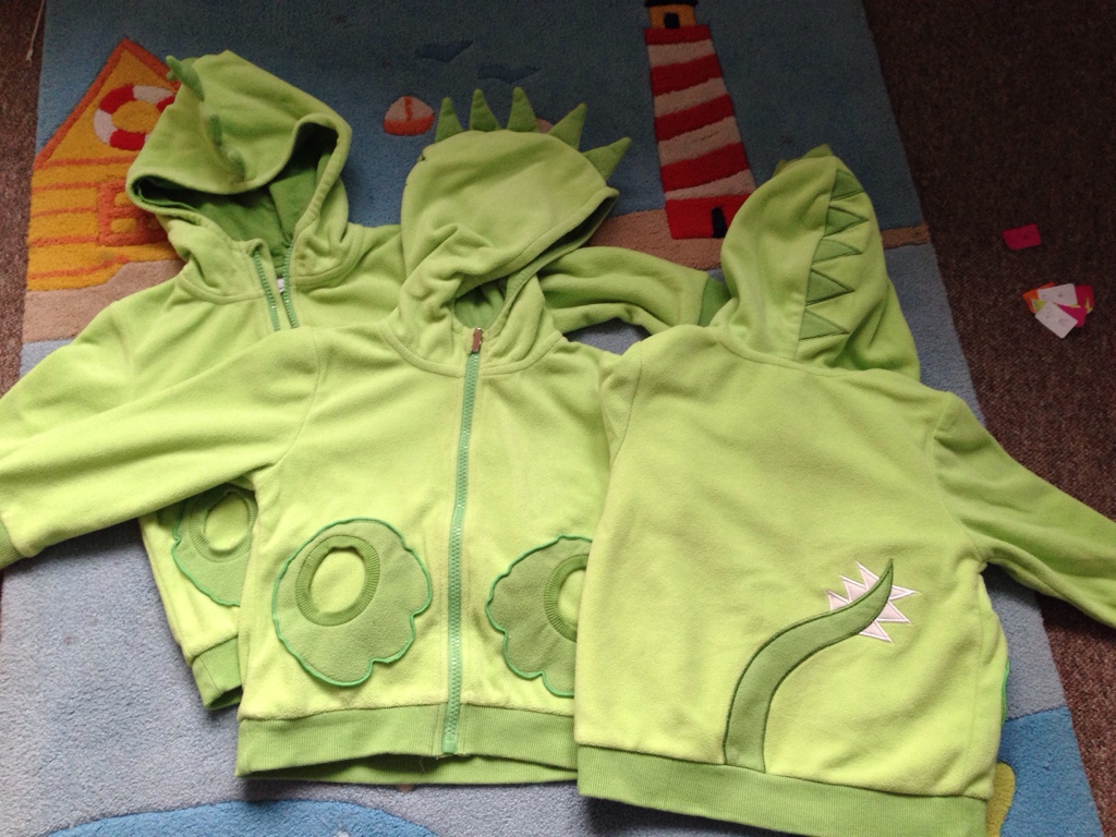 3 Drache/Dino- Fleecejacke in grün mit 3-D Kaputze der Firma Bornino