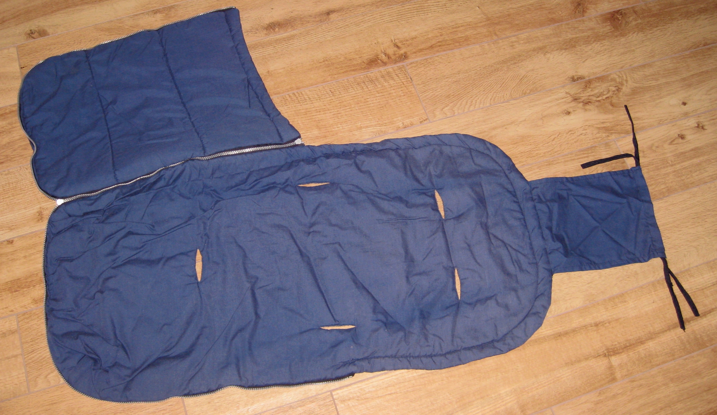 Anmerkung: die Farbe der drei gleichen Fußsäcke ist auf den beiden Einzelfotos am besten getroffen. Es ist ein richtig dunkles Blau.