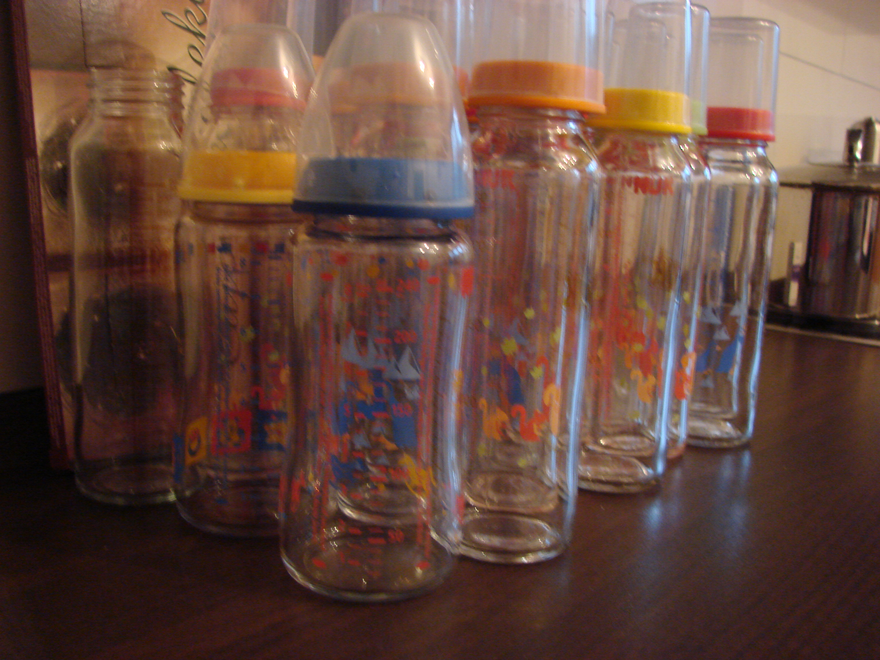 wir verkaufen die NUK Glasfläschchen unserer Kinder. Bis auf eine Flasche haben alle einen Verschluss. 19 Fläschchen fassen 230 ml und 2 Fläschchen befassen 240 ml. Die 240 ml Flaschen sind für First Choice Sauger geeignet.